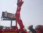 A loader crane (also called a knuckle-boom crane or articulating crane) is a hydraulically powered articulated arm fitted to a truck or trailer, and is used for loading/unloading the vehicle. The numerous jointed sections can be folded into a small space when the crane is not in use. One or more of the sections may be telescopic. Often the crane will have a degree of automation and be able to unload or stow itself without an operator's instruction. In the UK and Canada, this type of crane is often known colloquially as a "Hiab", partly because this manufacturer invented the loader crane and was first into the UK market, and partly because the distinctive name was displayed prominently on the boom arm